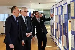 The first official visit abroad Gerapetritis went on was to Cyprus on 4 July.[7][8] He was initially received by President Nikos Christodoulides, before meeting with his counterpart the Cypriot Foreign Minoster Constantinos Kombos.[8] In joint statements with Kombos, Gerapetritis stated that the Cyprus issue was a "top national foreign policy priority" for Greece, and also said that the solution must be "functional and grant the reunited Cyprus Republic the future it deserves."[9] Gerapetritis also stated that they were living in "historic moments" and that the circumstances were "significant" and quite "challenging regionally and internationally."[8] Additionally, Gerapetritis also discussed the steps taken by Greece and Cyprus in building deeper ties with regional allies, particularly Israel.[8]