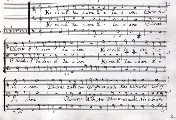 The Brunetti family often used the same first names for their children, and many of the family members were composers. This complicates the exact identification of the music.[3][5] At least three of the five children of Giovan Gualberto were musicians (among them became famous Antonio and Giuseppe, himself father of another Antonio)[1][5] and often Brunetti’s works were attributed to them in the past.[3] Of his musical production, a great amount of sacred music is preserved, much of which is conserved as manuscript copies from the late 1700s. The Duomo Archive (Piccolomini Library and Metropolitan Opera) of Siena (which also preserves his assumed autograph[6]) and the Palatina Library (Biblioteca Palatina) of Parma possess the greatest number of the aforementioned manuscripts.[7][8] Other cities that conserve copies of Brunetti’s works are Pistoia (in Rospigliosi Music Collection at Archive of the Chapter),[9] Lucca (Diocesan Library “Giuliano Agresti”), Pescia (Archive of the Chapter),[10] Genoa (Paganini Conservatory) and Palermo (Bellini Conservatory).[11] His autographs are found at the Santini-Bibliothek of Münster, and at the Philharmonic Academies of Bologna and Torino,[7][8] but the most notable number of compositions were rediscovered by the Centro Documentazione Musicale della Toscana (Italian web site) in Pisa: the Historical Musical Archive of the Opera della Primaziale possesses more than 530 compositions by Brunetti, most of which are autographs,[12] while the Musical Archive of the Ordine dei Cavalieri di Santo Stefano conserves 15 works, 8 of which are autographed.[13][14] Of his, at the least, seven theatrical operas documented, we have the librettos of five (conserved for the most part at the Cini Foundation of Venice, but also at the National Libraries in Florence, Rome and Cosenza, as well as in the Conservatory in Naples),[15] and only musical fragments (single arias) of two, present in Uppsala (at Universitetsbibliotek «Carolina Rediviva»)[16] and at Berkeley (Jean Gray Hargrove Music Library).[17]