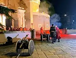 In 1428 the fief of Angri was restored (to which the historical-reenactment events 1421–1425 and 1428–1436 called "Palio Storico Città di Angri" are linked),[19] the period in which Giovanni strategically distanced himself from Angri, his brother Francesco made use of the special prerogatives and graces that he had deserved with his surrender, he worked hard at the court of King Alfonso so that the fiefdom of Angri could return to its legitimate owner of his brother and his heirs. Angri, in fact, with the Cancellara fiefdom (see the Grancia di Pizzaguto) once again entered the feudal succession of the Zurolo with all the connected jurisdictional rights (by virtue of the royal disposition of Ferdinand I of Aragon, known as Ferrante XVIII, King of Naples, 1458–1494), with a certain Scipione (son of Salvatore Rossillo and nephew of Giovanni) who in 1485 is listed, in the documents of the time, as dominus utilis of Angri; then on 5 February 1463, he was invested with the fiefdom of Solofra, again by the same sovereign, Ferrante I. Ad antiquo therefore the fiefdom of Angri remained with the Zurolo counts until it came under the dominion of other noble and powerful lords of the kingdom.[20][21][22][23]