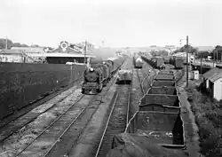 The Yallourn branch was opened from Hernes Oak (between Moe and Morwell) to Yallourn in 1922 to serve the adjacent power station development. It was replaced by a line from Moe to Yallourn in 1953 because its route was required for brown coal mining,[4] but the new line closed in 1987, having been disused since the late 1970s.[4][5]