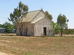 St Paul's Anglican Church in Myall Street (31°14′48″S 146°54′21″E / 31.2468°S 146.9057°E) held its first service on 30 August 1925. The church building was a former shop relocated from Cobar, erected by Mr Howarth of Nyngan.[33] It is now closed but still extant in private ownership.[34]