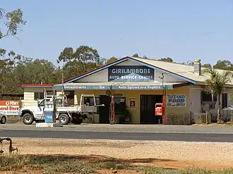 Girilambone is a small village in western New South Wales, Australia. It is located north of Nyngan and 610 km north-west of Sydney. The name is also applied to the surrounding area, for postal and statistical purposes. At the 2016 census, the population of the village and its surrounding area was only 107,[2] but it had fallen to just 86 in 2021.[3] The village was originally associated with copper mining.