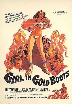 Girl in Gold Boots is a 1968 crime/drama film about the seedy underworld of go-go dancing, directed by Ted V. Mikels, who also directed The Astro-Zombies. It was Mikels's first movie for his own company, Gemini.[1]