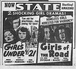 ![]() 1951 newspaper advertisement for Girls Under 21 and Girls of the Road | |