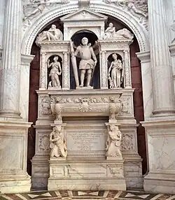 Girolamo D'Auria (1577–1620) was an Italian sculptor, active mainly in Naples, Italy. His first name is variously used as Hieronymus, Ieronimo, Hieronimo, Jeronimo, Geronimo or Gerolamo. Girolamo's father, Giovanni Domenico D'Auria, and Annibale Caccavello, were pupils of Giovanni da Nola.[1] his main task was sculpting funereal monuments including some in Santi Severino e Sossio, the church of Santa Maria di Monteoliveto, and the monument of Giovanni Alfonso Bisvallo, sculpted in 1617 at San Severo al Pendino.