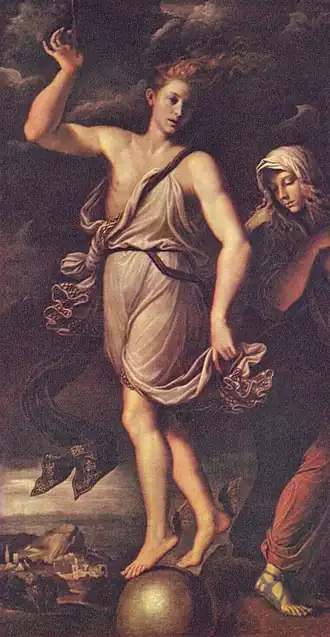 Opportunity and Remorse by Girolamo da Carpi (1541), at Gemäldegalerie, Dresden
