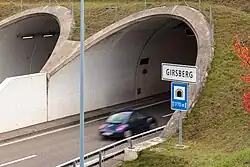 The Girsberg Tunnel is a motorway tunnel in Switzerland. The tunnel lies in the northeastern part of the canton of Thurgau, and forms part of the A7 motorway from Winterthur to Kreuzlingen and the border to Germany. The tunnel was completed in 2002, and is 1,770 metres (5,810 ft) in length.[1]