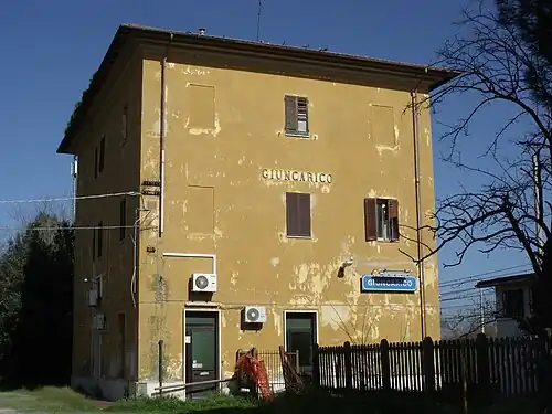 Giuncarico railway station is a disused Italian railway station on the Tirrenica railway line, located in Giuncarico, in the municipality of Gavorrano, Province of Grosseto, Tuscany.
