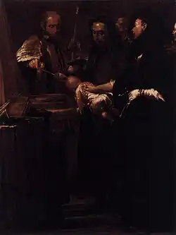 While many came to work in the studio, Crespi established after Cignani's departure, few became notable. Antonio Gionima was moderately successful. Others included Giovanni Francesco Braccioli; Giacomo Pavia; Giovanni Morini; Pier Guariente; Felice and his brother Jacopo Giusti;[5] and Cristoforo Terzi.[6] He may also have influenced Giovanni Domenico Ferretti. While the Venetian Giovanni Battista Piazzetta claimed to have studied under Crespi, the documentation for this is nonexistent.