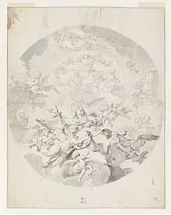 For the church of the Annuziata of Savona he painted the figures in a ceiling fresco with quadratura by Giovanni Battista Natali. Also for the Church of San Filippo Neri in Savona, which later became the church of the Scuole Pie, he painted the main altarpiece with San Filippo Neri and the Virgin.[3] He painted an Annunciation for the Parish church of Spotorno.[4] He died in Genoa.