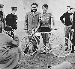 ![]() Giuseppe Martano at the arrival of Milan-Turin in 1937 (winner of the event). | ||||||||||||||||||