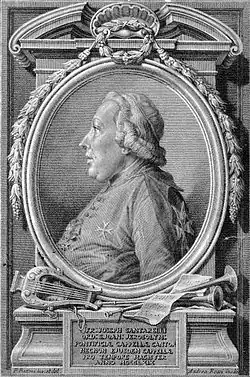 Born in Forlì, he entered a monastery in the Order of Saint Augustine at a young age where he was eventually ordained. The exact details of his musical training are unknown, although it is clear he must have been thoroughly trained in music composition, music theory, and in singing. He was active on the opera stage in Venice during the 1740s. In 1749 he became a singer in the Sistine Chapel Choir in Vatican City, ultimately being appointed conductor in 1770. He was also for many years the cantor at the Basilica di Santa Maria Maggiore. In 1761 he published an essay on the organisation of the Sistine Chapel Choir, under the title: Informazione del Cantor Fra' Giuseppe Santarelli Cappellano d'onore dell'Eminentissimo e Reverendissimo Signor Cardinale Alessandro Albani come Ministro Plenipotenziario delle Loro MM. Imp. e Reali presso la S. Sede. In risposta ad un Biglietto di esso Eminentissimo (Roma, Komarek).[1] As a teacher of singing his notable pupils included Muzio Clementi and Venanzio Rauzzini. His compositions consist entirely of choral works.