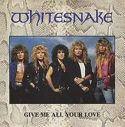 "Give Me All Your Love" is a song by the English rock band Whitesnake. The song is taken from the group's 1987 multi-platinum self-titled album. Being the fourth single released from the album, the track reached number 48 on the US Top 100 charts, number 22 on the Mainstream Rock Charts,[3] number 18 in the UK charts,[4] and 49 in New Zealand.[5]