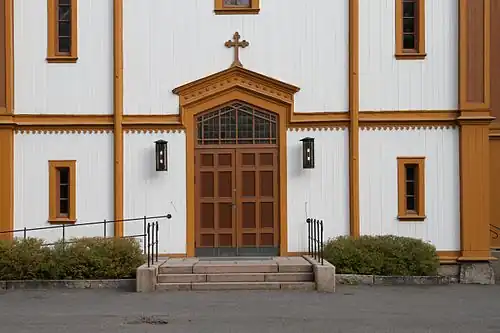 Gjøvik Church (Norwegian: Gjøvik kirke) is a parish church of the Church of Norway in Gjøvik Municipality in Innlandet county, Norway. It is located in the town of Gjøvik. It is the church for the Gjøvik parish which is part of the Toten prosti (deanery) in the Diocese of Hamar. The white, wooden church was built in a long church design in 1882 using plans drawn up by the architect Jacob Wilhelm Nordan. The church seats about 600 people.[1][2]