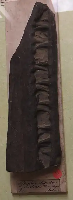 Glaphyrorhynchus is known only from a jaw fragment found in the late Aalenian of Aalen, Germany.[1] The holotype is lost, so the validity of the taxon remains unclear.[2]