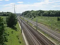 The Glasower Damm Ost – Bohnsdorf Süd railway is an electrified, predominantly double-track main line in Germany. It is mainly located in the state of Brandenburg south of Berlin, but a small part of it is in Berlin. It is mainly intended to connect Berlin Brandenburg Airport (BER) with the underground Berlin Brandenburg Airport station. Its eastern section replaced the Berlin-Grünau – Berlin Schönefeld Airport South railway (Bahnstrecke Berlin-Grünau – Berlin Flughafen Schönefeld Süd), which was opened in 1963. This ran parallel to the current line and was mainly used to supply the airport with fuel and building materials. From 1992 to 2010, it was also used for passenger services to the biennial ILA Berlin Air Show.