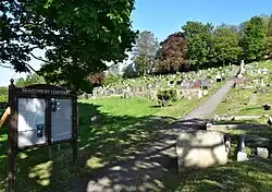 The cemetery received another extension in 1999, when the Glastonbury and Sharpham Burial Joint Committee acquired additional land above the existing site from Mendip District Council.[15] The extension provided the cemetery with further plot space for an additional 50 years,[16] and has included a section used for green burials since 2005, the Edmund Hill Green Burial Site.[17]