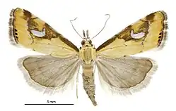 - ^ a b c d e Edward Meyrick (May 1883). "Descriptions of New Zealand Microlepidoptera. I and II. Crambidae and Tortricina". Transactions and Proceedings of the New Zealand Institute. 15: 14–15. ISSN 1176-6158. Wikidata Q111013914.