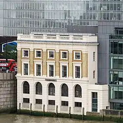 The original Glaziers Hall was burnt down during the Great Fire of London in 1666. The current Hall was acquired and refurbished in 1977. It is located on the south side of London Bridge on Montague Close in the London Borough of Southwark and has views over the River Thames towards the City of London.