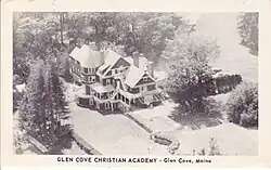 The school opened in 1958 with 40 students and met in Pittsfield, Maine, with half the students boarding and half as day students.[16] It began to investigate the Warrenton estate in the Glen Cove section of Rockport near Rockland Maine in 1959. The estate consisted of sixty-seven acres of land with 2500 feet of ocean front and a main house of thirty-five rooms and ten baths, a carriage house and an outlying barn, all in good condition. The property had recently been used by the Round Table Foundation, a research organization, and had been vacant for two years. The foundation allowed the school to occupy and use the property pending the settling of the title. This was accomplished a year later on September 28, 1960, and the school was known as Glen Cove Christian High School.[2] Two years later it graduated its first class as the Glen Cove Christian Academy.[17]