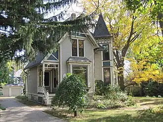 The Glen Ellyn Main Street Historic District is a set of eleven buildings in Glen Ellyn, Illinois. The houses were built between 1874 and 1890 when the village was known as Prospect Park. The swampy setting of the village began to gain a reputation as a retreat away from the city, and by 1882 the village was large enough for incorporation. Wealthy businessmen built homes along the main stretch of the village in what would become the historical district. In the mid-1880s, a river was dammed, creating Lake Glen Ellyn, spurring the new name for the village.