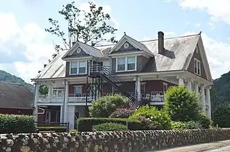 Glen Ferris Inn, also known as Stockton's Inn, Stockton's Tavern, and Hawkins's Hotel, is a historic hotel located on the bank of the Kanawha River overlooking Kanawha Falls at Glen Ferris, Fayette County, West Virginia. It may have been built as early as 1815. It is a T-shaped brick building in two sections. One section is a three-story, painted brick dwelling. The second is a two-story, red brick wing measuring 140 by 40 feet (43 by 12 m). The building features a wraparound porch supported by 13 stuccoed brick columns. In the 19th century, the building was a stagecoach stop and served as a Union quartermaster's depot during the American Civil War. In the first half of the 20th century, it housed managers, supervisors, and workers involved in developing the area's manufacturing and hydro-electric capacity.[2]