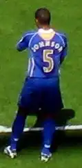 In Chelsea's FA Cup fifth-round match against Newcastle United in the following season, goalkeeper Carlo Cudicini was sent off late in the match, and with no substitutions remaining, Johnson went in goal. Although he did not concede, Newcastle were already 1–0 up and went through at the expense of Chelsea.[24] He picked up a winner's medal when he came on as a second-half substitute for Chelsea in the 2005 League Cup final, a match which Chelsea won 3–2 against Liverpool after extra time.[25] He also made 16 appearances,[26] enough for a medal, as they won the Premier League title in this season, but he was to miss out on a medal for their success in the next season after managing only four appearances in the league.[27]