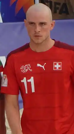 He originally pursued association football but switched to beach soccer aged 14.[4][6] He debuted in the Swiss National League aged 15,[7] and subsequently made his debut for Switzerland in 2013 in a friendly versus Poland aged 16.[1] Aged just 18, he was top scorer of the 2015 Swiss League season.[7] That year, he represented the Swiss national team at the FIFA Beach Soccer World Cup for the first time, and has since appeared at three more editions (2017, 2019, 2021). At the latter, he won the Golden Boot (top scorer award) with 12 goals,[6][8] despite being suspended for one match.[9]