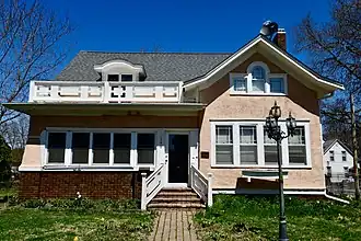 The Glenn O. and Lucy O. Pyle House is a historic building located in Marion, Iowa, United States. Pyle, who was involved in his family's lumberyard, built this 1½-story bungalow in 1924 for his family home. They moved here from a house on 14th Street that he also built. Both houses are located in a neighborhood where the community's more prominent citizens built their homes in the late 19th and early 20th centuries.[2] They sold this property in 1933 after they had relocated to Hollywood, Florida. The house features decorative elements from both of the Craftsman and Colonial Revival styles. While it is thought that this is a patternbook or catalog house, there appear to be several custom details that suggests Pyle may have designed elements of this house himself.[2] It is also the largest of the three houses in Marion attributed to him. The house was individually listed on the National Register of Historic Places in 2002.[1] At the same time it was included as a contributing property in the Pucker Street Historic District.[3]