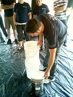 GlobalMedic responded by freighting over 2.8 million Aquatab purification pills and PUR water cleansing sachets to Kenya and Somalia. The volunteer organization additionally produced over two thousand water filtration devices using large plastic food pails, converted by dozens of its volunteers in the borrowed warehouse space of a Mississauga, Ontario air freight company. The filtration kits were then matched with commercial Envirogard ceramic water filter cartridges.[33][34]