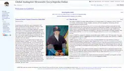 GAMEO was started in 1996 as the Canadian Mennonite Encyclopedia Online by the Mennonite Historical Society of Canada.[1] In 2005 the project was renamed to its current title and the scope expanded with the additional partnership of the Mennonite Brethren Historical Commission and the Mennonite Church USA Archives. The collaboration has since further expanded, with the addition of the Mennonite Central Committee in 2006, the Mennonite World Conference in January 2007, and the Institute for the Study of Global Anabaptism in 2011.[2]