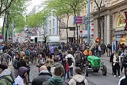 Held in Vancouver, British Columbia, on the first Saturday of May. People gather at the fountain at the Vancouver Art Gallery at or before 2:00 pm for a marijuana legalization parade through the streets of downtown Vancouver.[21] The parade route is different every year.[22]