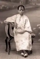 Ranjika died in childbirth in 1914 and in 1918 Ah Hong sold his market garden and took his three children to China, to be cared for by relatives.[7] It was a yearlong journey; the family had to first travel to Darwin by horse and buggy before taking a ship. In China she was welcomed by her father's family who, although aware her mother was Aboriginal, welcomed her with open arms and was respectful towards her.[8] Her father spent a year in China with Lee and her siblings, and then returned to Alice Springs alone in 1920.[9] While Lee lived in China, she went to school, learning to read and write in Cantonese, she remained in school until the age of 15 or 16. After completing her education, she helped with household duties, as was customary at the time.[1][7]