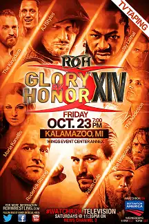 Glory By Honor XIV was a two night, two city professional wrestling event produced by the U.S.-based wrestling promotion Ring of Honor, and the 14th Glory By Honor. The first night of the event took place on October 23, 2015, at the Wings Event Center in Kalamazoo, Michigan. The second part of the event took place on October 24, 2015, at Montgomery County Fairgrounds Coliseum in Dayton, Ohio.