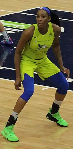 During the 2017 season, Johnson continued to put double-doubles in rebounds and points which is what she has become statistically known for earlier on in her career. On June 18, 2017, Johnson scored a season-high 27 points in an 87–83 win over the Washington Mystics.[15] From July 31 to August 6, Johnson was named the Western Conference player of the week.[16] On August 19, 2017, Johnson recorded her 13th double-double of the season, scoring 23 points along with 13 rebounds in a 90–86 win over the Atlanta Dream.[17] During the game, Johnson threw a punch at Dream's point guard Matee Ajavon and served a one-game suspension two days later.[18] The Wings would finish with a 16–18 record and the number 7 seed in the league. In her first career playoff game, Johnson scored 15 points and grabbed 14 rebounds in a losing effort to the Washington Mystics in the first round elimination game.