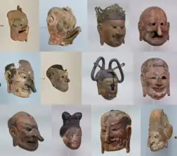 - A category of Noh mask depicting powerful supernatural beings, characterized by its fierce expression with bared teeth and wrinkled brow.
