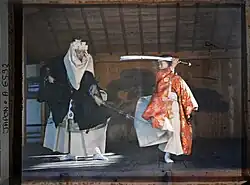 - Dramatic scenes in kabuki (縁切/愛想づかし) depicting forced separation of lovers, typically accompanied by music and often leading to tragic consequences. Features stylized expressions of hidden emotions and misunderstandings.