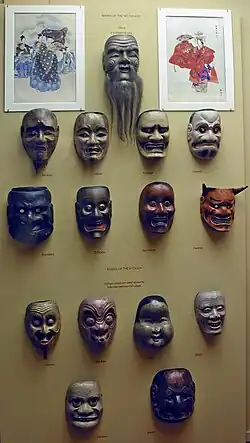 - A type of Noh mask (能面) representing an elderly male character, characterized by its dignified expression and architectural features. Used in plays featuring aristocratic characters or spirits.