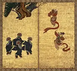 - A medieval Japanese performance art that combined recitation with mimetic movement. It served as a precursor to later theatrical forms and was often performed by shrine personnel.