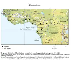 Geographic distribution of Glossina fusca as reported in scientific papers – Publication period 1990–2020