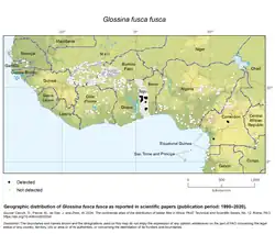 Geographic distribution of Glossina fusca fusca as reported in scientific papers – Publication period 1990–2020