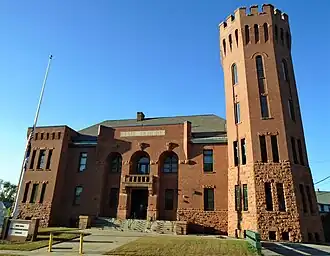 Gloversville Armory is a historic National Guard armory building located at 87 Washington Street in Gloversville, Fulton County, New York. It is a brick and red sandstone castle-like structure built from 1903 to 1904, designed to be reminiscent of medieval military structures in Europe. It was designed by State Architect George L. Heins in the Late Victorian style.
