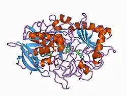- ^ Li J, Vrielink A, Brick P, Blow DM (November 1993). "Crystal structure of cholesterol oxidase complexed with a steroid substrate: implications for flavin adenine dinucleotide dependent alcohol oxidases". Biochemistry. 32 (43): 11507–15. doi:10.1021/bi00094a006. PMID 8218217.