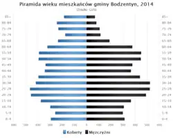 The gmina covers an area of 160.32 square kilometres (61.9 sq mi), and as of 2006 its total population is 11,677, of which the population of Bodzentyn is 2,241, and the population of the rural part of the gmina is 9,436.