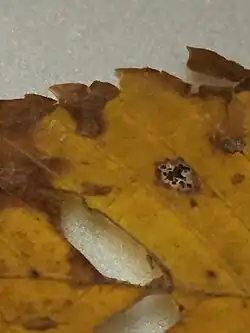 | Symptoms of black spot on an elm leaf in the fall | |