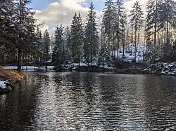 Near Godovič there are fossilized dinosaur footprints.[6] There are the remnants of a First World War military narrow-gauge railway known as the Feldban and an unfinished railroad tunnel from 1917. There are also examples of the snake-branch Norway spruce (Picea abies 'Virgata'), a rare variety of spruce.