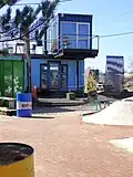 Beginning in 2009, the former goods station was renovated, the two warehouses was rebuilt and refurnished, and a new building was constructed in between. The new and old buildings now house the cultural centre of Godsbanen, opening on 30 March 2012,[3] and organize a host of cultural arrangements and facilitates everyday cultural engagement for the citizens of Aarhus and surrounding suburbs. This includes theatre, dancing, music, film, artwork, printing, workshops, festivals and business networking.[4] Since the opening of the centre, there has been a restaurant and café, at the center of the new building, but it has changed owners and concept several times. The former restaurant of Thorvalds (named after the original goods station's first manager Thorvald Engqvist) took over from Aarhus Folkekøkken (Aarhus Civic Kitchen) and is now replaced by Spiselauget. With slightly varying concepts, the restaurants has always focussed on sustainability and organic, seasonal and local produce.[5][6][7][8]