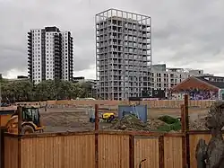 New construction at Godsbanen, as of May 2019. About half of the Institut for (X) village has been demolished and Æggepakkeriet is almost finished.