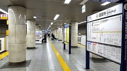 Gokokuji Station (護国寺駅, Gokokuji-eki) is a subway station in Bunkyō, Tokyo, Japan, operated by Tokyo Metro. Its station number is Y-11. The station is named after a nearby Buddhist temple of the same name.