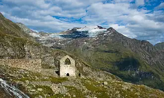 ![]() Former wheelhouse of the Goldberg material ropeway with the Hocharn in the background | |